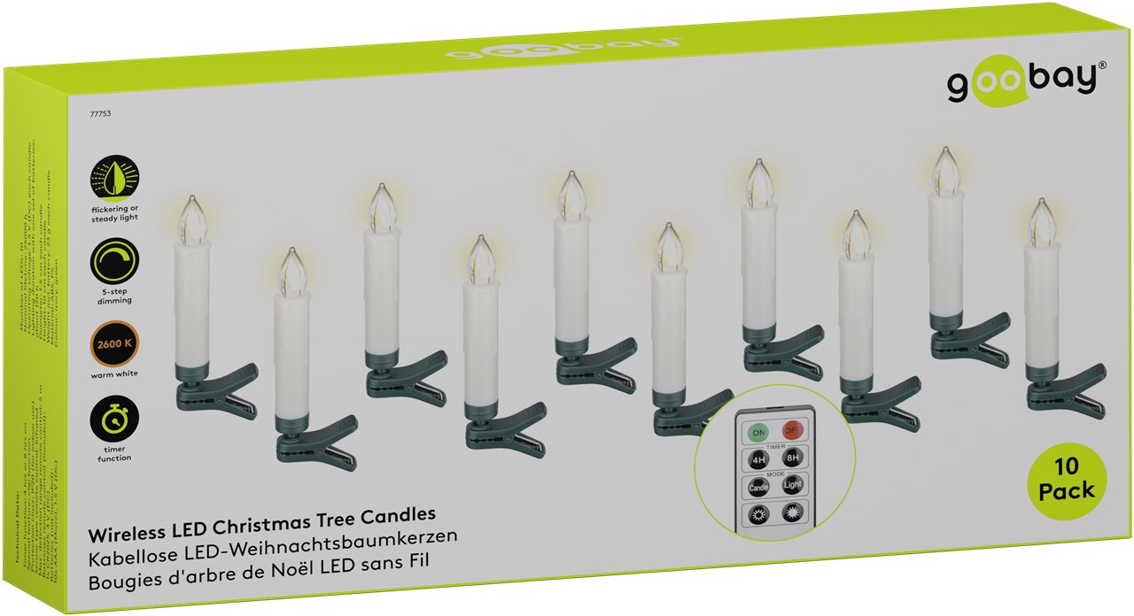 • Precise alignment thanks to the practical green crocodile clips and the ball joint of the Christmas tree candles