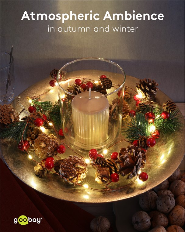 - Wire light chain creates an atmospheric ambience in autumn and winter as decoration for living rooms, windows, stair railings and as table decoration.