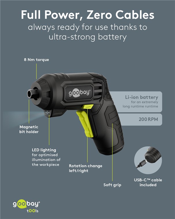 • Successfully complete your project: Powerful electric screwdriver with 8 Nm torque, in a compact format for screwdriving jobs at home, in the workshop or for hobby use