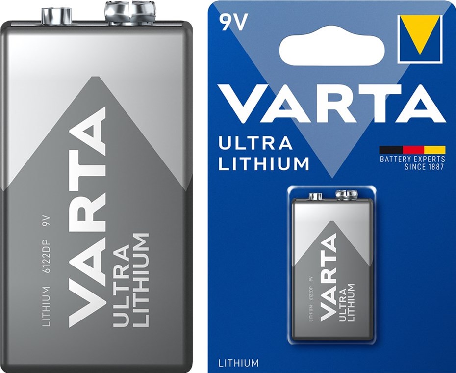 - VARTA lithium batteries 6F22 are ideal for sports and outdoor use, as they are up to 38 % lighter than alkaline batteries.