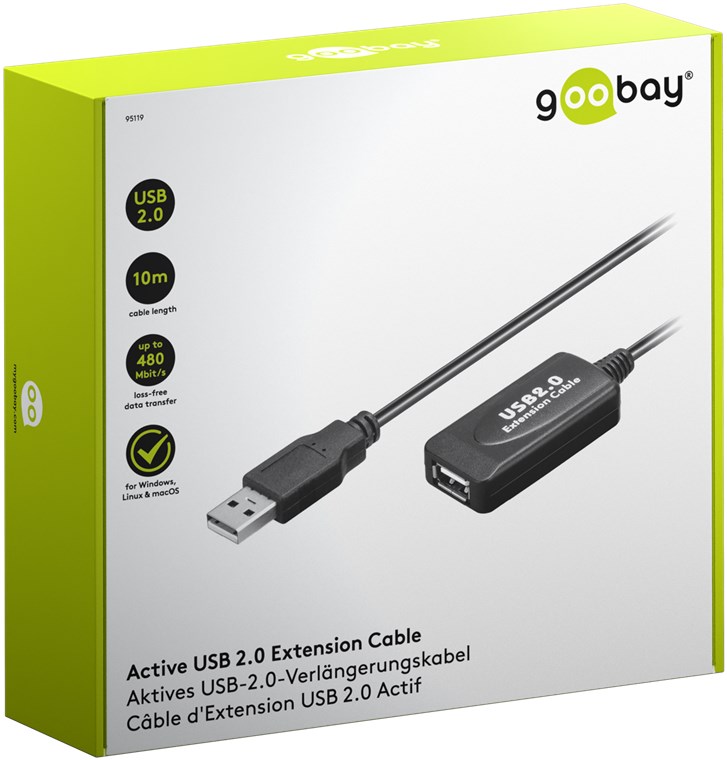 - Connect up to two active 10 m extensions to a total length of 20 m - 4x longer than regular USB cables with the same performance
