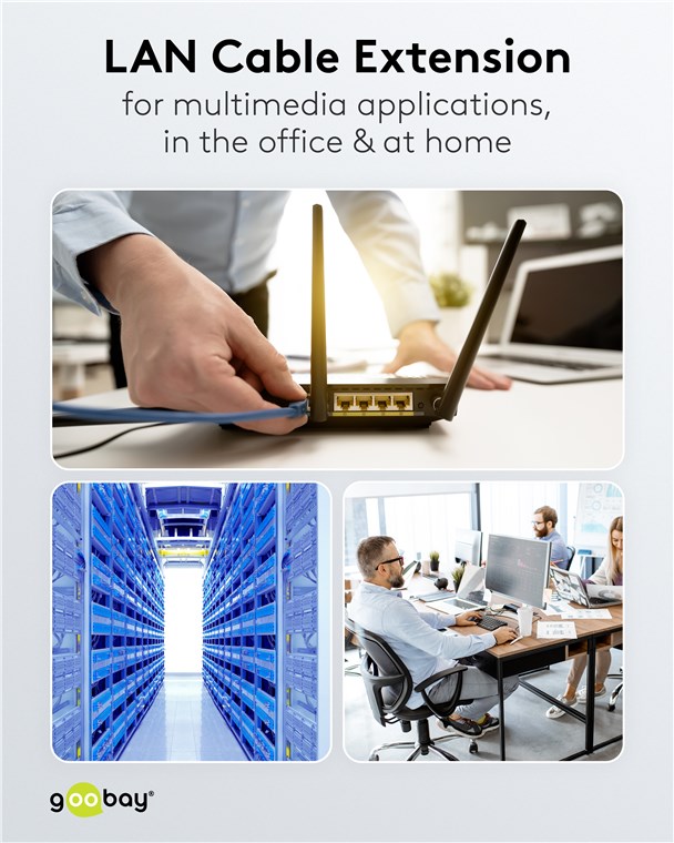 • High-quality copper conductor (CU) and gold-plated contact surfaces for an excellent, high-performance network connection
