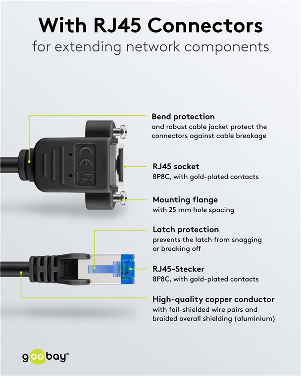 • Double-shielded LAN cable extension with RJ45 plugs for connecting network components