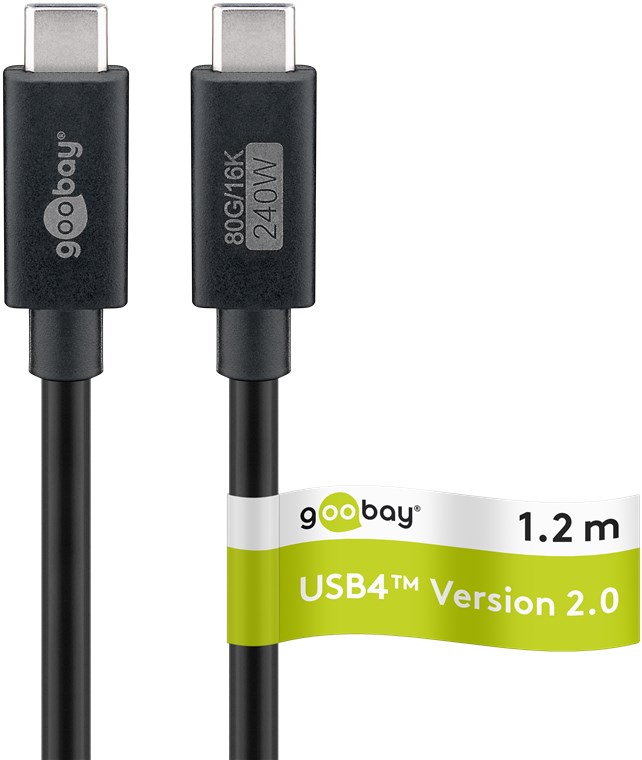 Certified USB-C™ Cable, USB4™ Version 2.0, 1.2 m, black
