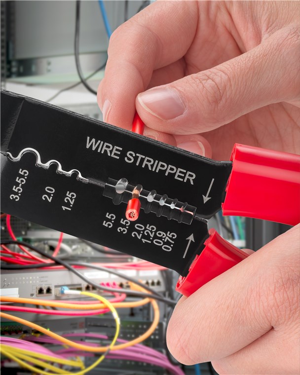 - Precisely fitted openings for cable cross-sections of 0.75 mm², 0.9 mm², 1.25 mm², 2.0 mm², 3.5 mm² and 5.5 mm² prevent damage to individual stranded wires during stripping