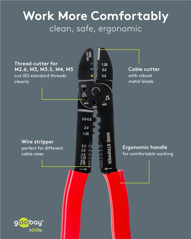 - The robust metal blade ensures that the wire cutter cleanly cuts through wires and cables up to 6.0 mm² thick