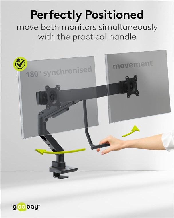 - With the practical handle, both monitors can be swivelled and positioned synchronously – comfortably and effortlessly thanks to the gas pressure spring