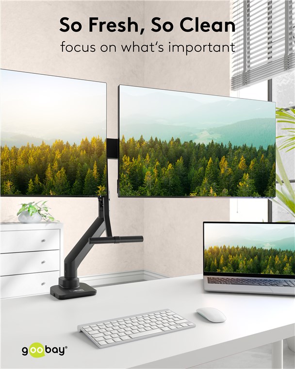 - The mount for the professional sector: With its slim base, the robust metal monitor stand is the space-saving solution for desks in the office or at home
