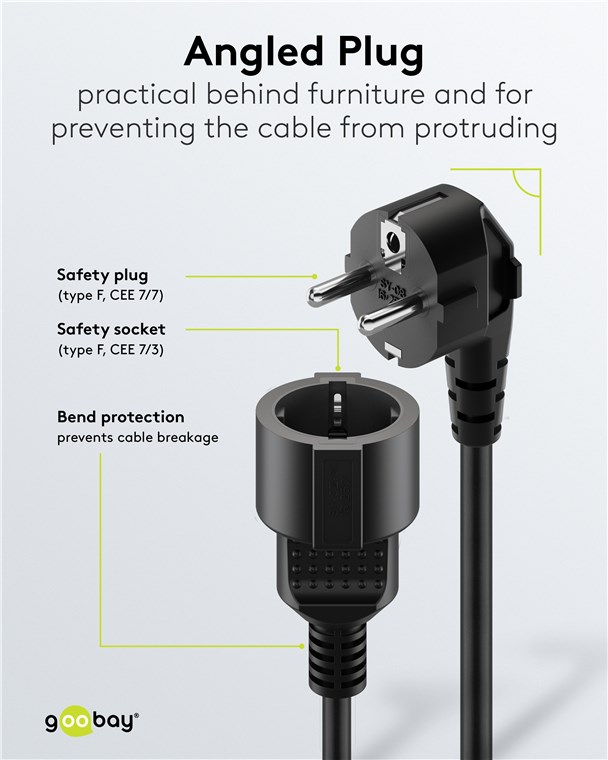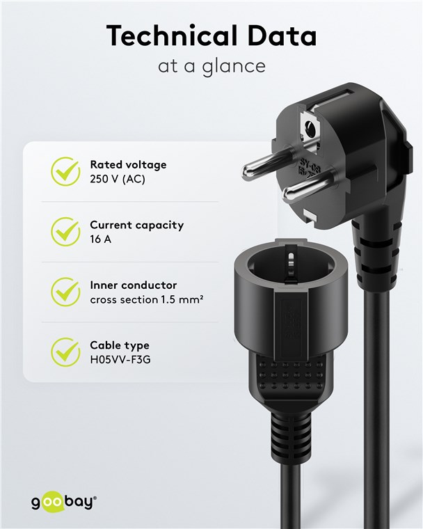 - The extension cord is ideally suited for coupling devices with medium mechanical stress to the socket outlet.