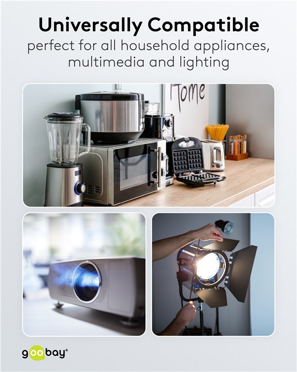- Use the mains cable to flexibly connect electric units anywhere indoors.
