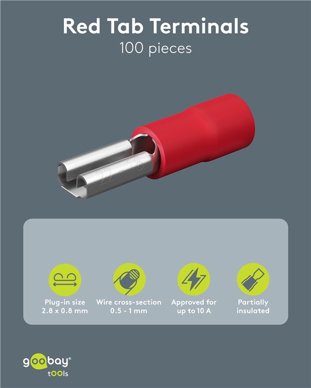 plug-in size: 2.8 mm x 0.8 mm, 10 A