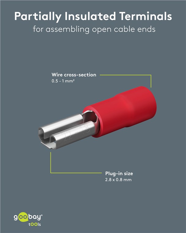 - The insulated crimp terminals are suitable for cables with a core cross-section of 0.5 mm - 1.0 mm²