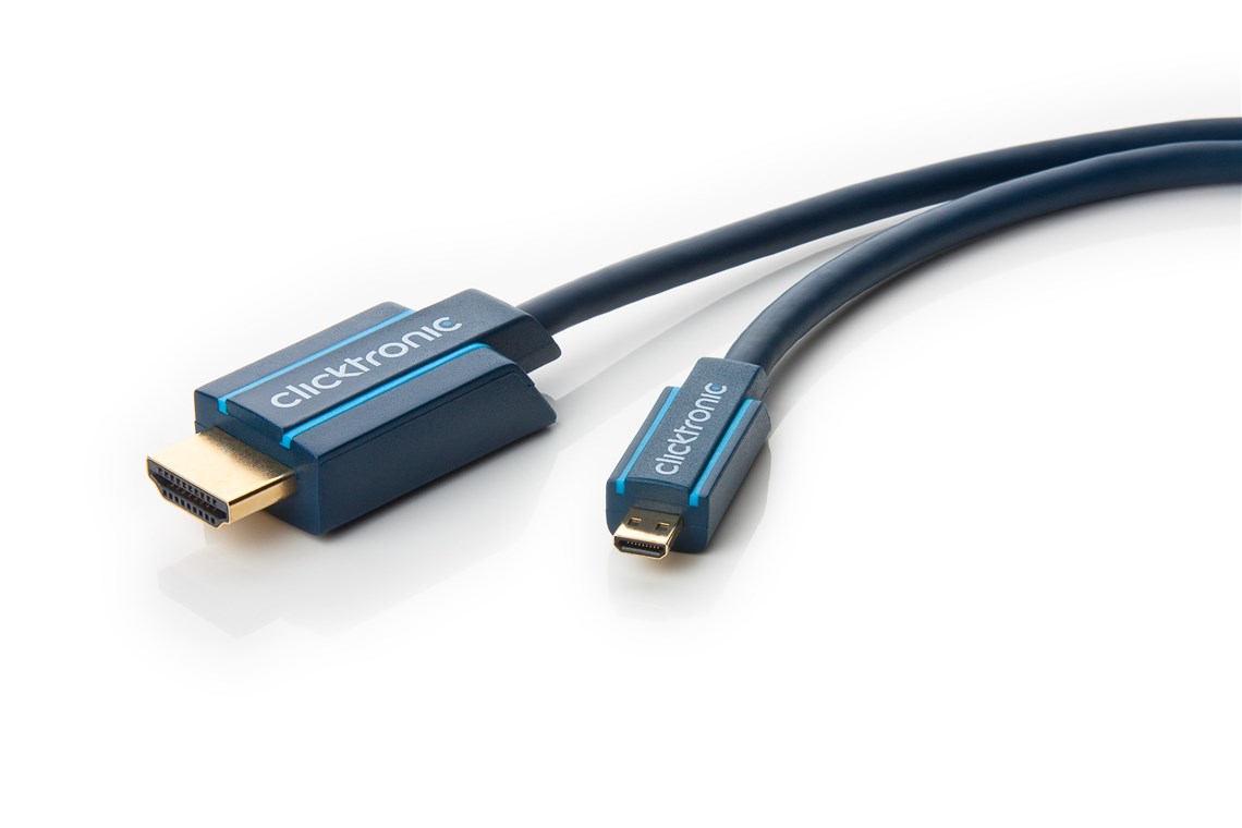 Clicktronic attaches great importance to durability and stability. Our quality promise: 10-year warranty on our HDMI cables. The proprietary construction of our connection cables makes them extremely robust. The three-part connector construction made of PVC and ABS components compensates for jerky pulling on the cable, making it ideally protected against cable breakage. High-quality, gold-plated contacts and pure copper conductors transmit audio and video signals in maximum quality for a perfect home cinema and gaming experience. The HDMI-to-Micro HDMI adapter cable enables a crisp picture and has a fast transmission speed.