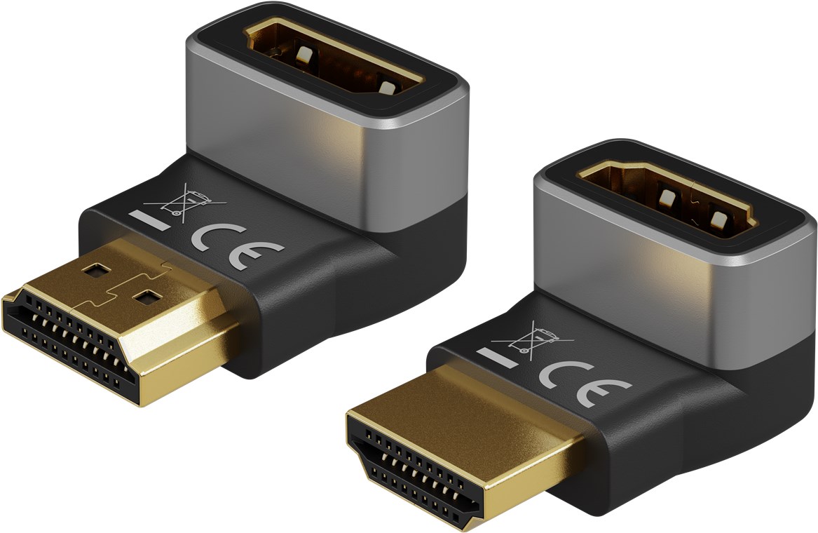 The angled adapter is the handy solution for connecting an HDMI™ cable even in confined spaces, e.g. on the back of a TV or the side of a laptop. Due to the angle of the plug, the cable runs closely along the device, effectively preventing kinking and cable breakage.