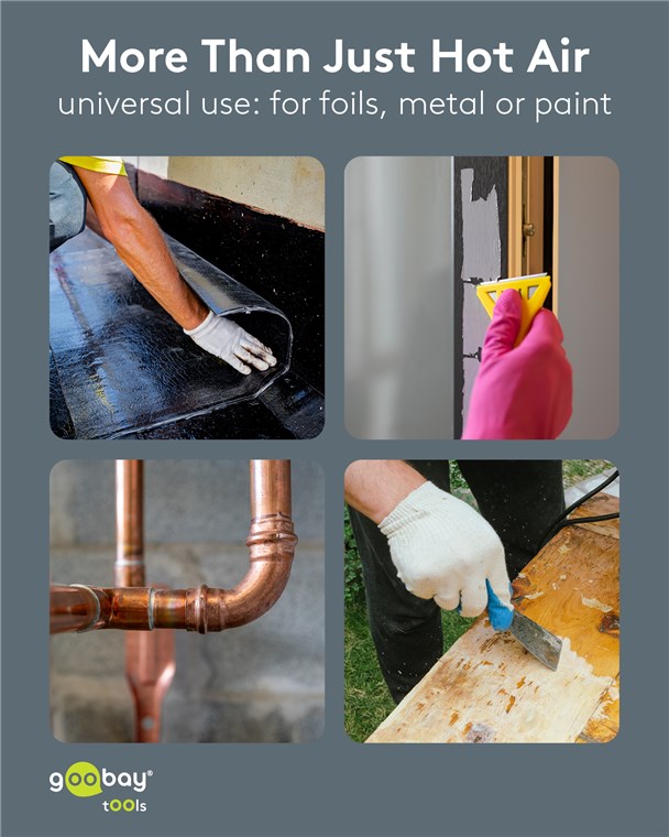 • Versatile heat gun, e.g. for attaching heat-shrink tubing, defrosting metal objects, shaping plastic or metal building materials