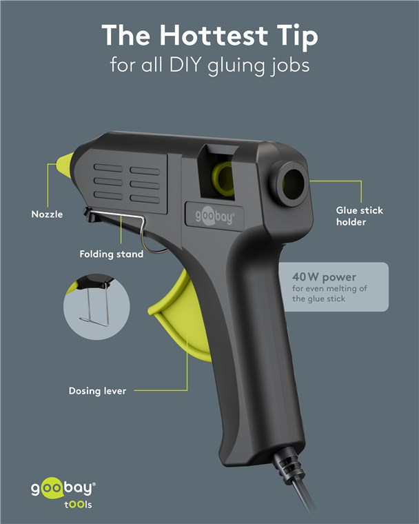 - Glues materials quickly and reliably together: Compact hot glue gun for all gluing jobs when crafting, decorating or repairing