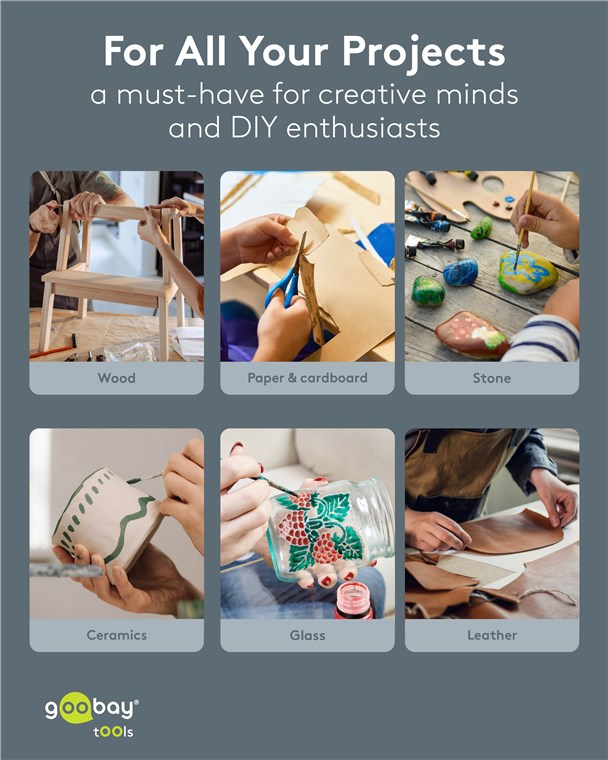 - Versatile: The glue gun sticks are suitable for numerous materials, e.g. cardboard, ceramics, wood, metal, leather, acrylic and glass
