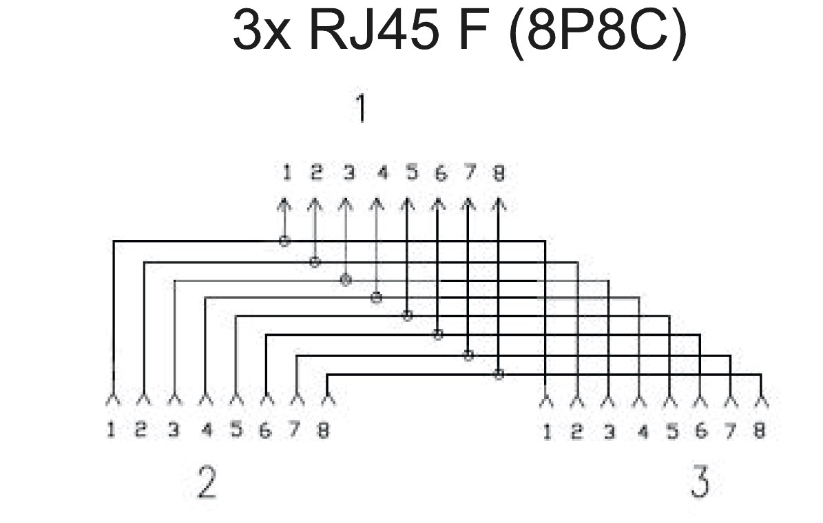 • RJ45 splitter with 3x 8P8C jack sockets to convert one ISDN connection to two