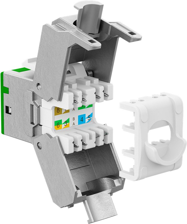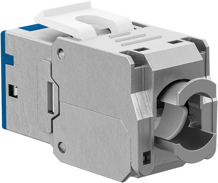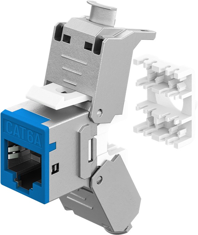 - CAT 6A Keystone module in a slim design and 16.6 mm wide for space-saving installation in patch panels – no longer lack of space when inserting several modules next to each other
