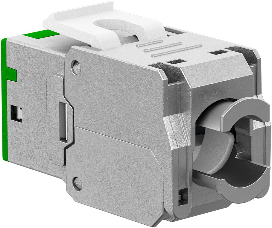 - CAT 6A Keystone module in a slim design and 16.6 mm wide for space-saving installation in patch panels – no longer lack of space when inserting several modules next to each other