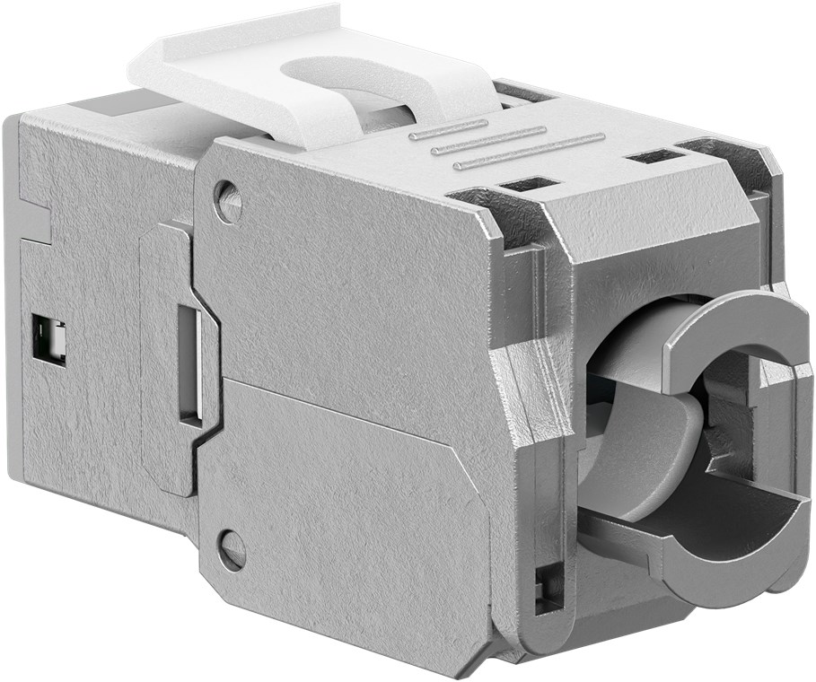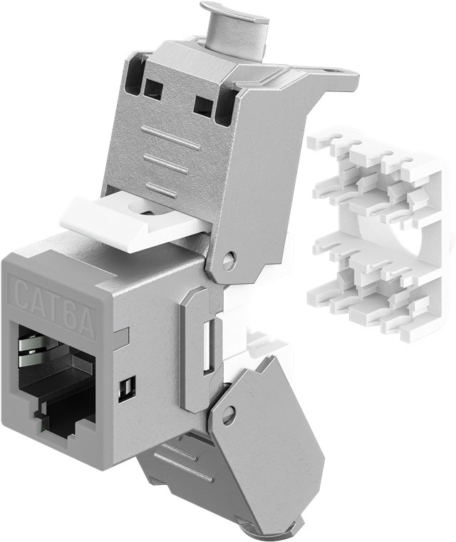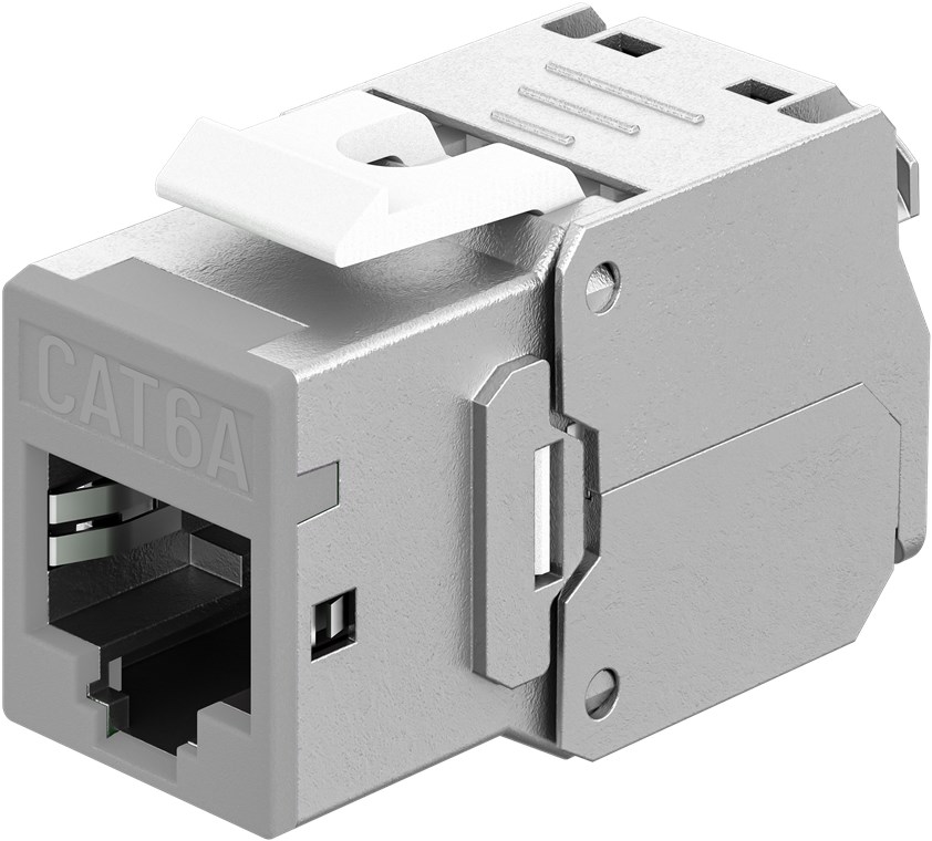 - CAT 6A Keystone module in a slim design and 16.6 mm wide for space-saving installation in patch panels – no longer lack of space when inserting several modules next to each other