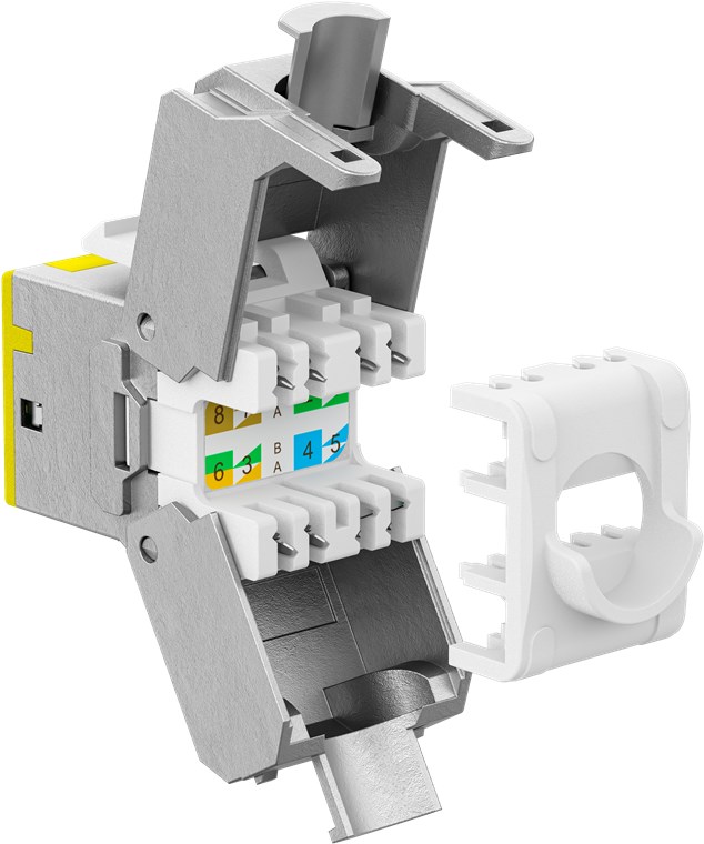 - CAT 6A Keystone module in a slim design and 16.6 mm wide for space-saving installation in patch panels – no longer lack of space when inserting several modules next to each other