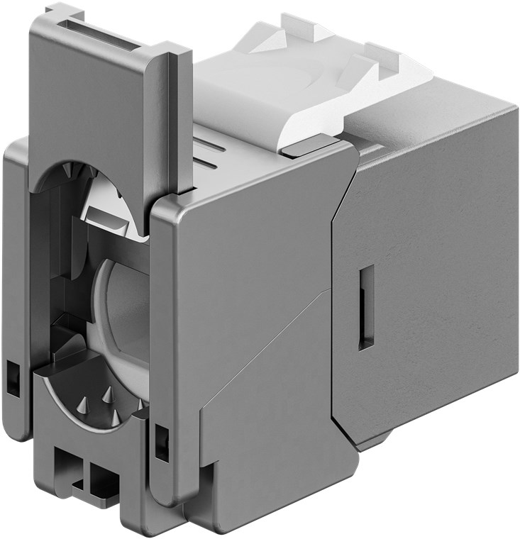 • CAT 6A Keystone module in a slim design and 14.5 mm wide for space-saving installation in patch panels – no longer lack of space when inserting several modules next to each other