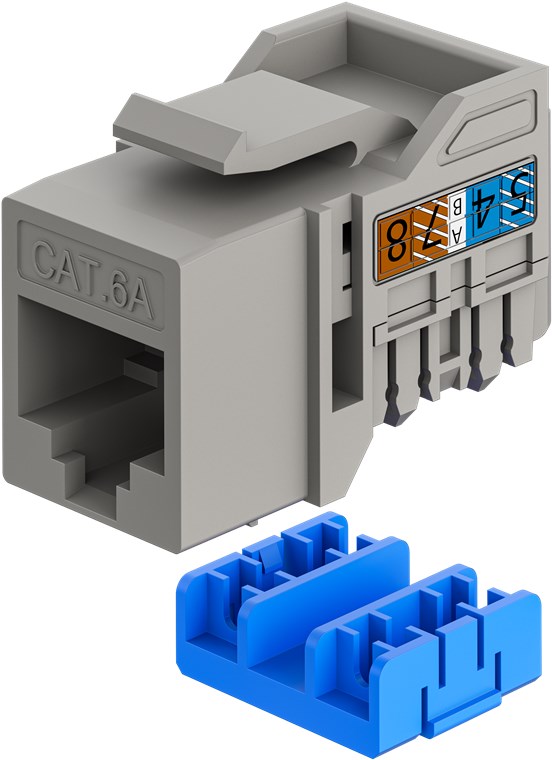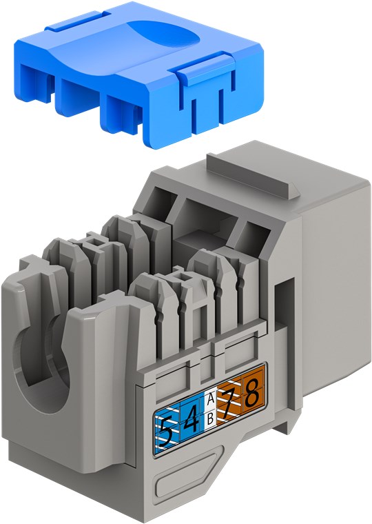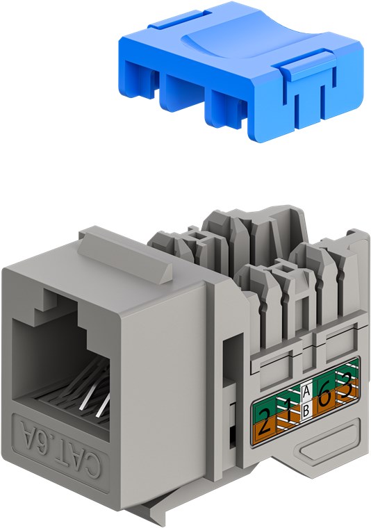 - CAT 6A Keystone module in a slim design and 14.5 mm wide for space-saving installation in patch panels – no longer lack of space when inserting several modules next to each other
