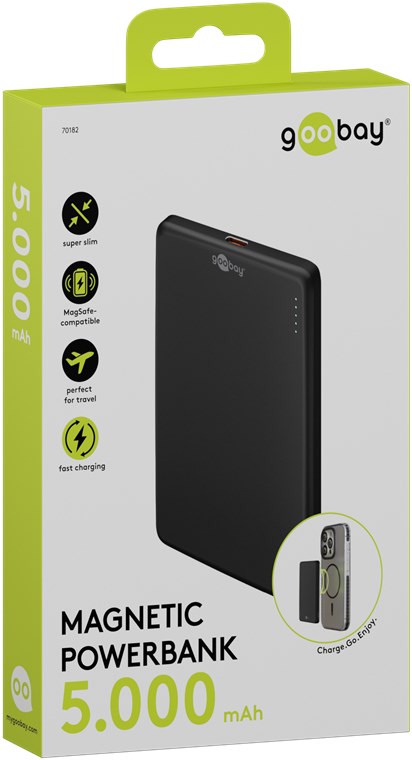 - With the magnetic ring, the power bank attaches securely, charging the mobile phone in your pocket on the go or while in use - without covering the camera
