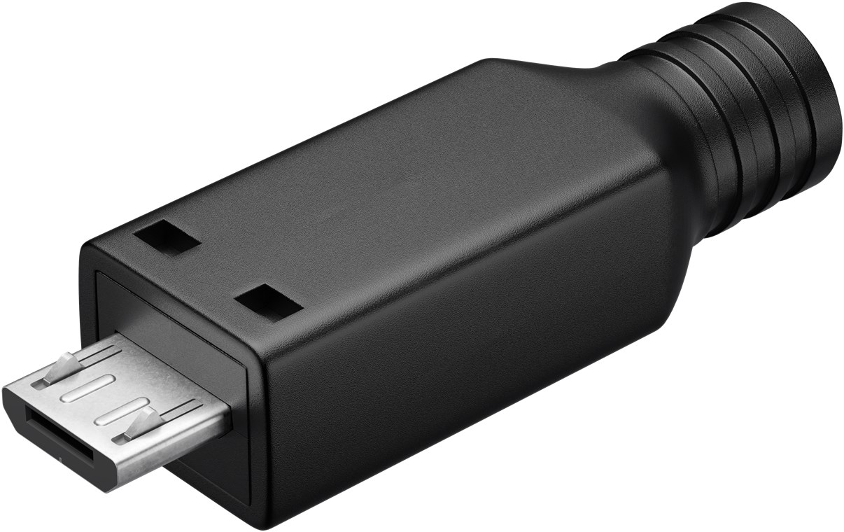 - Micro-B plug for solder mounting on power supplies, electronic or charging cables, e.g. from Raspberry Pi 1–3, tablet, headphones, Bluetooth headset or speaker, camera, mouse and keyboard