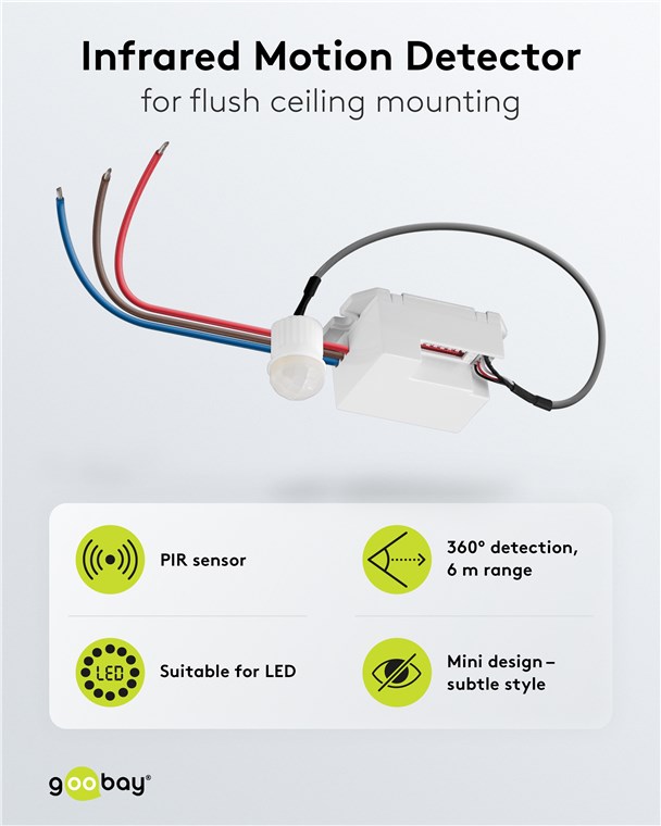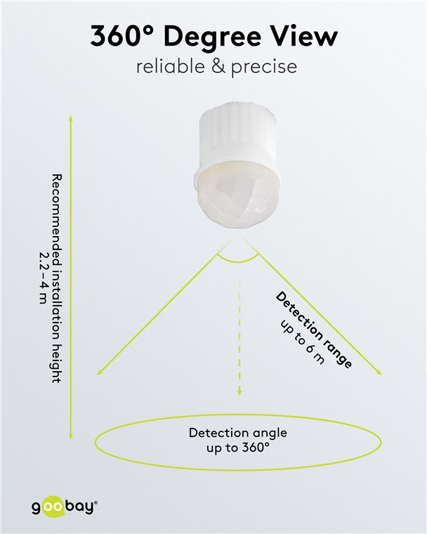 - With a detection angle of 360°, ideal for flush-mounted installation in cavity ceilings, installation height: 2.20 m to 4 m