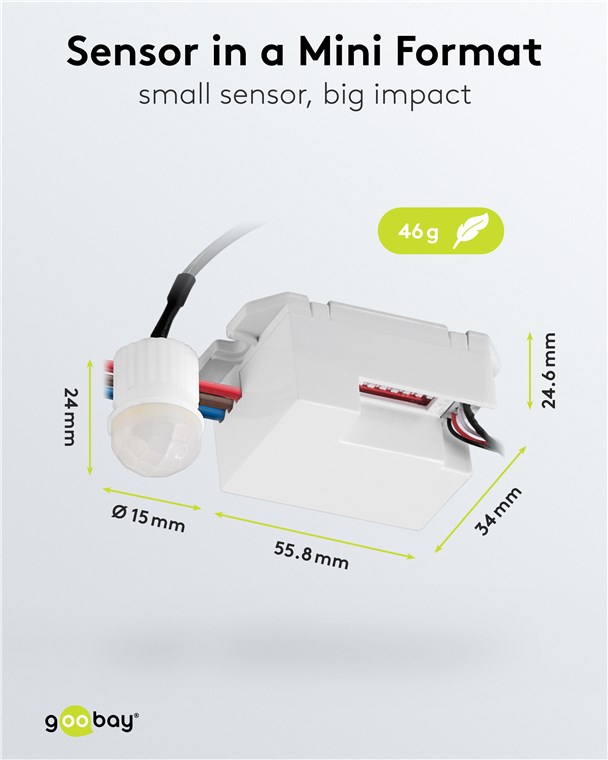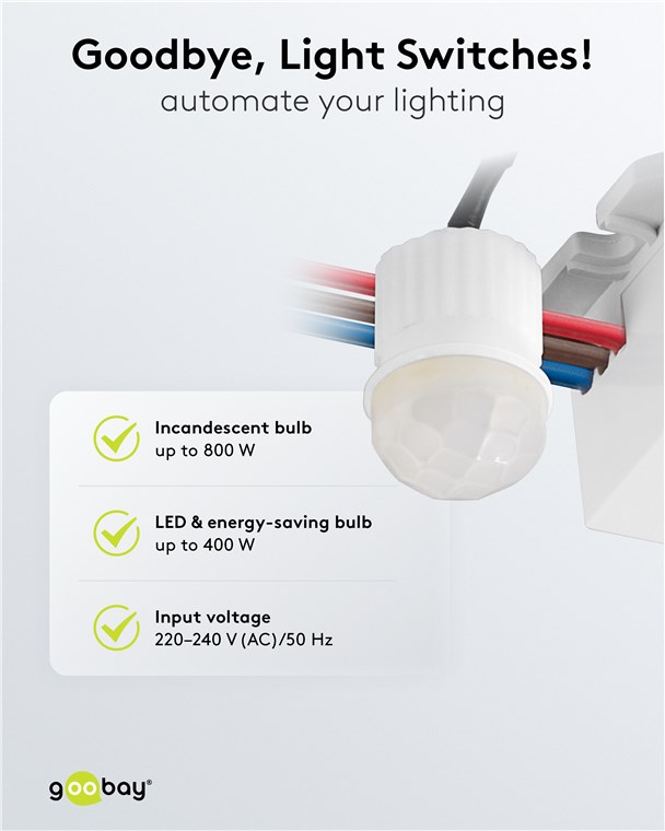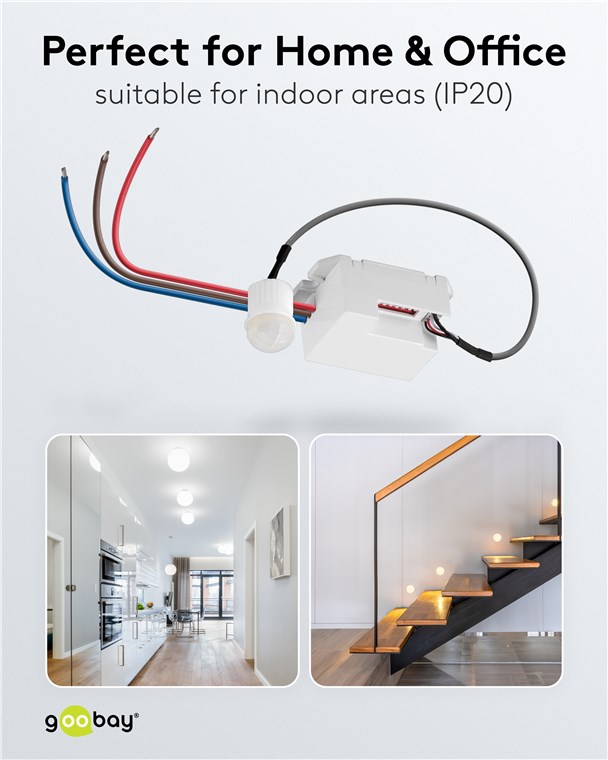 - Replaces the light switch and switches without contact: Particularly practical in rooms that you enter with your hands full, e.g. hallways or utility rooms