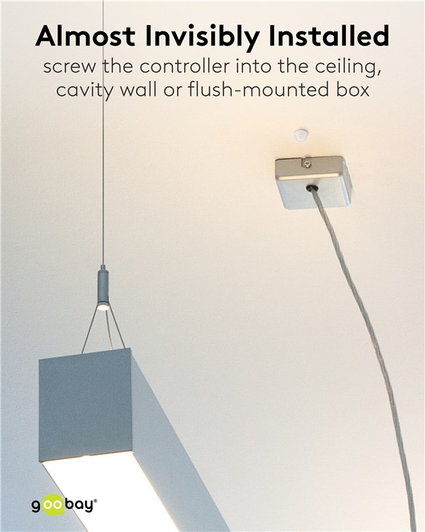 - With loose cable ends and two mounting lugs on the controller unit for easy screw mounting in flush-mounted boxes, in the ceiling or cavity walls