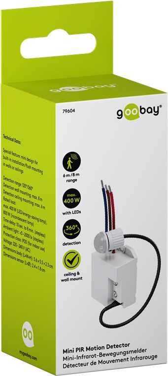 Mini format, maximum effect. With a sensor diameter of only 1.8 cm, the mini motion detector is visually discreet, but just as effective as a large-format motion detector. Perfect for corridors, bathrooms or hallways – the motion detector always reliably activates the connected lighting.