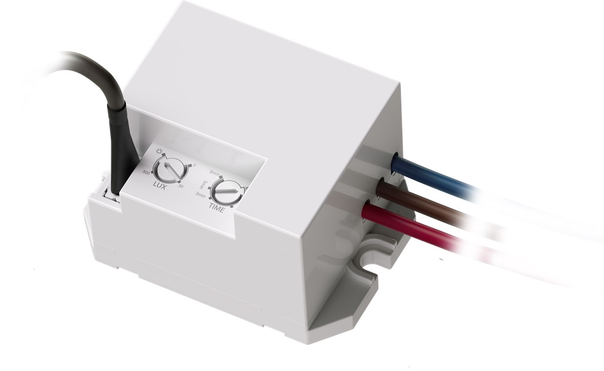 - Light sensitivity (3 lx to 2000 lx) and switch-off delay (10 s to 8 min) are easily and continuously adjustable behind the cover with the rotary control