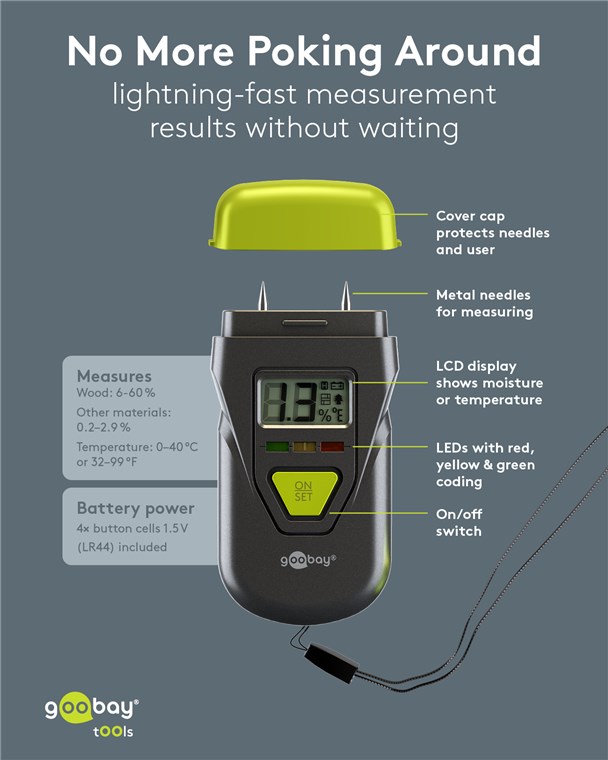 • Quick and clear: The wood moisture meter displays the measured values on the easy-to-read LCD display in a flash, without long waiting times