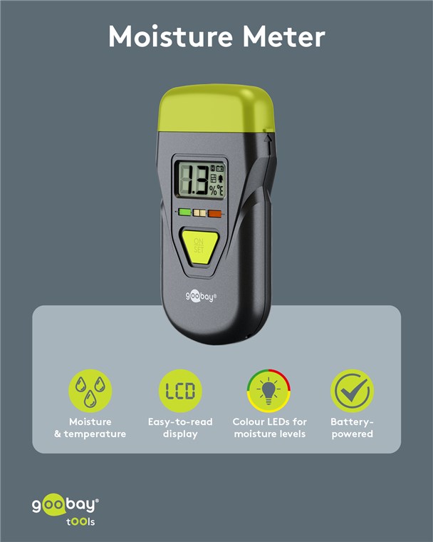 • The practical LEDs in red, yellow and green indicate how critical the respective moisture level is