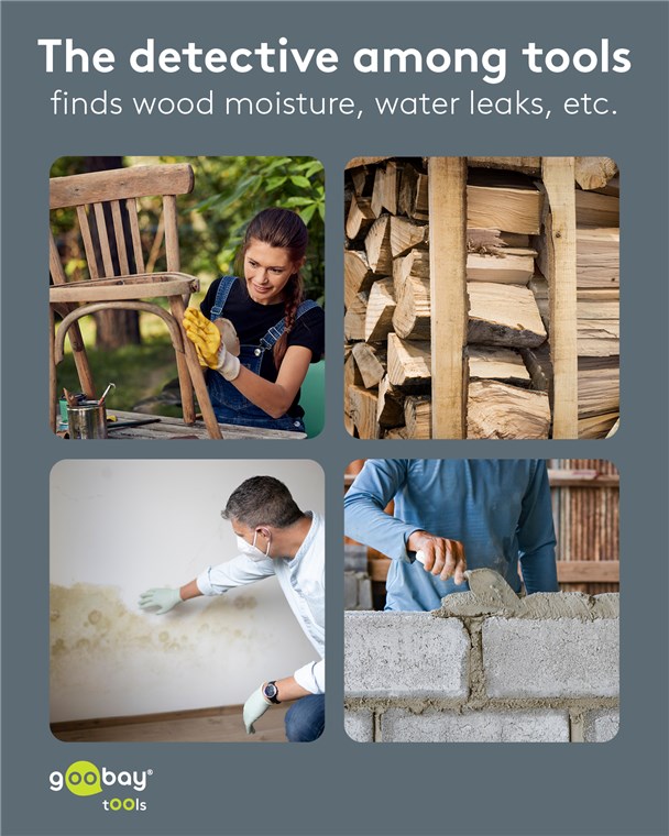 Sees what the human eye cannot see. This multi-talented tool in an ultra-compact format helps measure moisture in logs, construction timber and other building materials. The humidity meter also reliably detects moisture in walls and floors, e.g. due to water leaks.