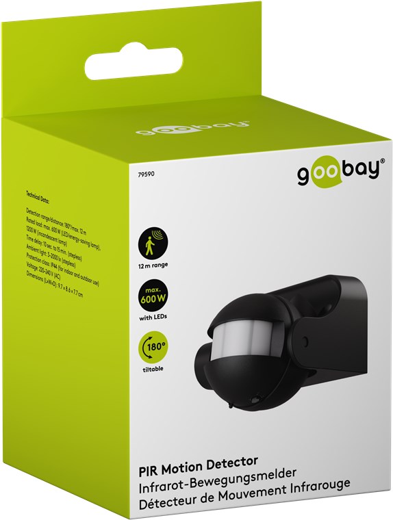 Wind and weather? No problem, the motion detector is IP44-rated, making it perfect for outdoor areas such as gardens, carports or house entrances. Simply connect it to path or outdoor lighting to avoid tripping hazards at dusk and in the dark. Motion detectors from Goobay – always feel safe and sound.