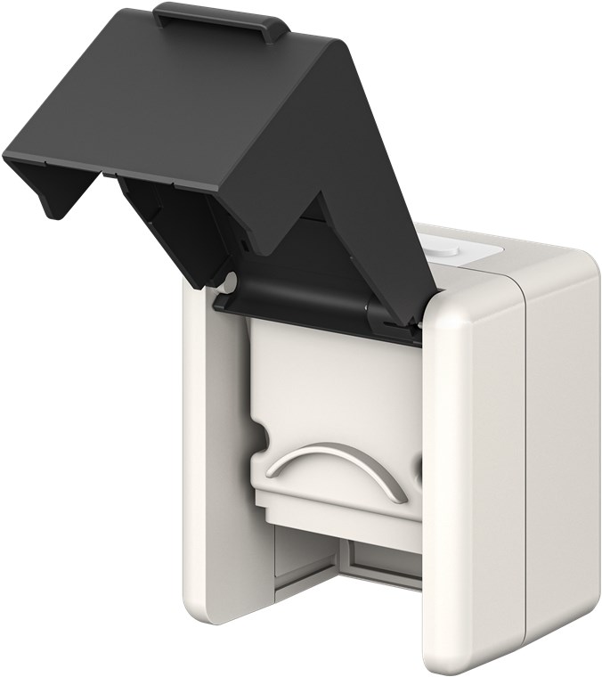 - The lid of the box can be easily opened and closed (for use) and, if necessary, you can break off two recesses for a permanent cable passage