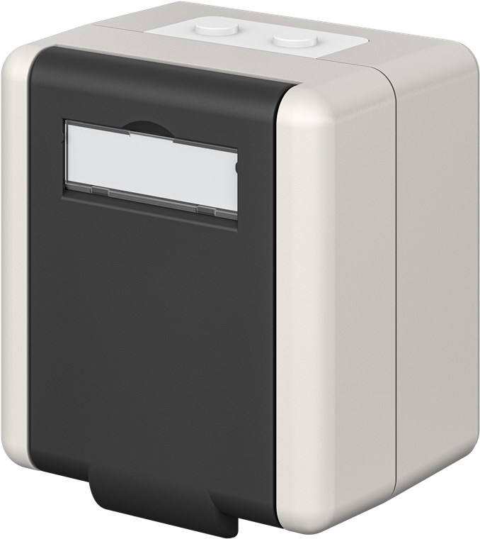 - Surface-mounted box with 2x empty ports for Keystone modules, ideal for use in damp rooms and outdoor areas (IP44), e.g. in the garden, basement or garage
