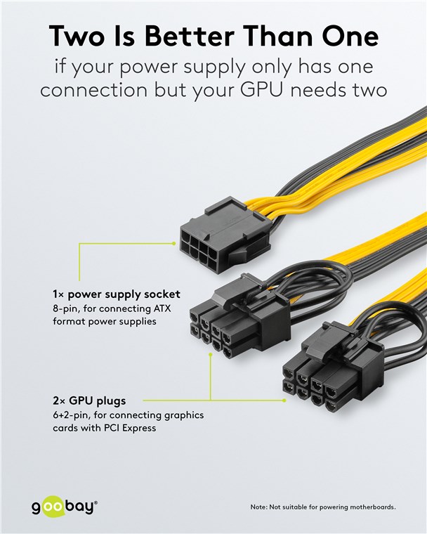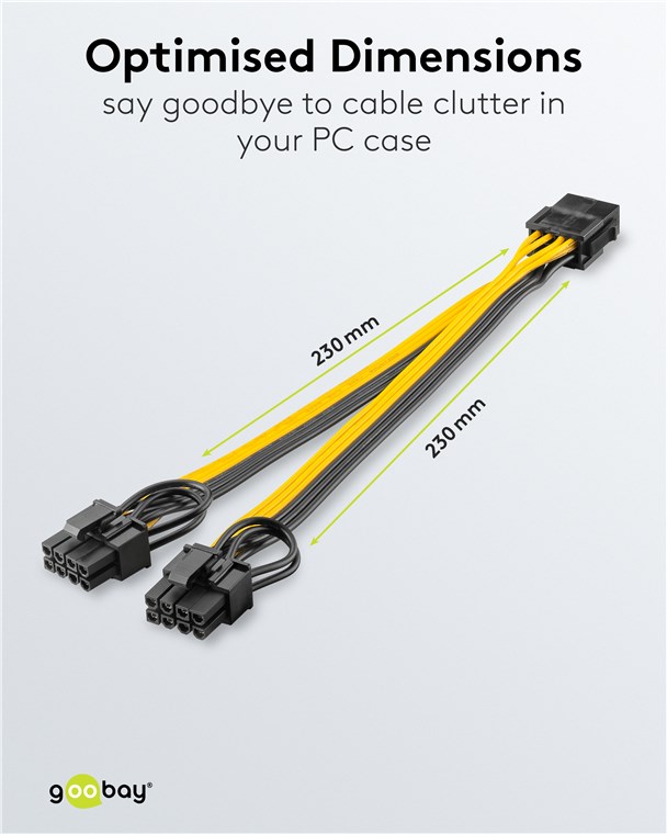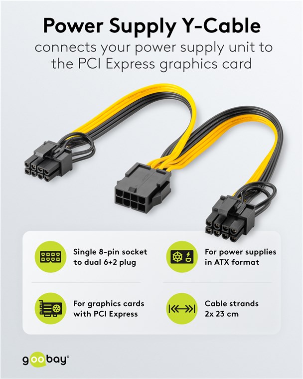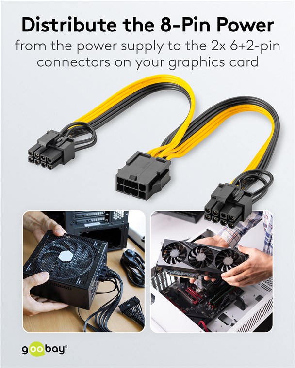 - Power cable for connecting modular PC power supplies to dual 6-pin and 8-pin graphics cards