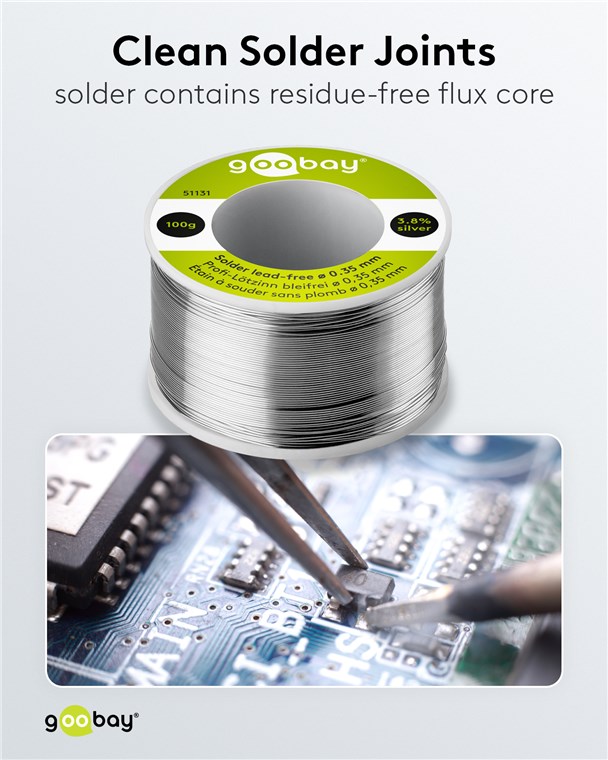 - Flux-filled solder wire with a very thin diameter of 0.35 mm for particularly easy dispensing and soldering of delicate components