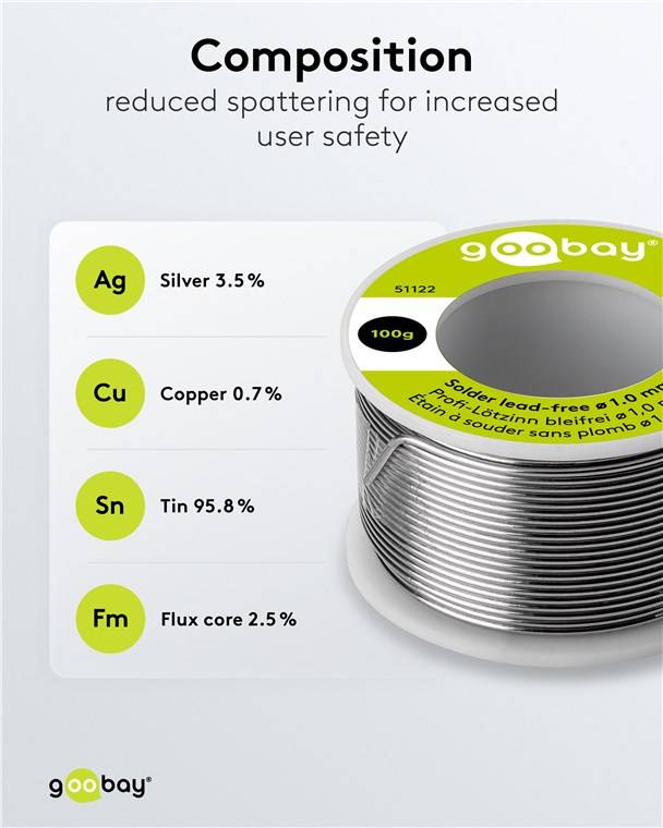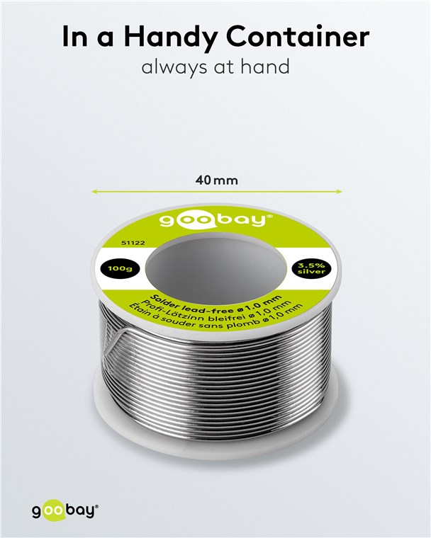 Suitable for soldering work on electrical components and devices such as circuit boards, PCBs, SMDs, DIP, cables, televisions, headphones or microphones. For especially easy and effective soldering, the flux is already incorporated in the tin.