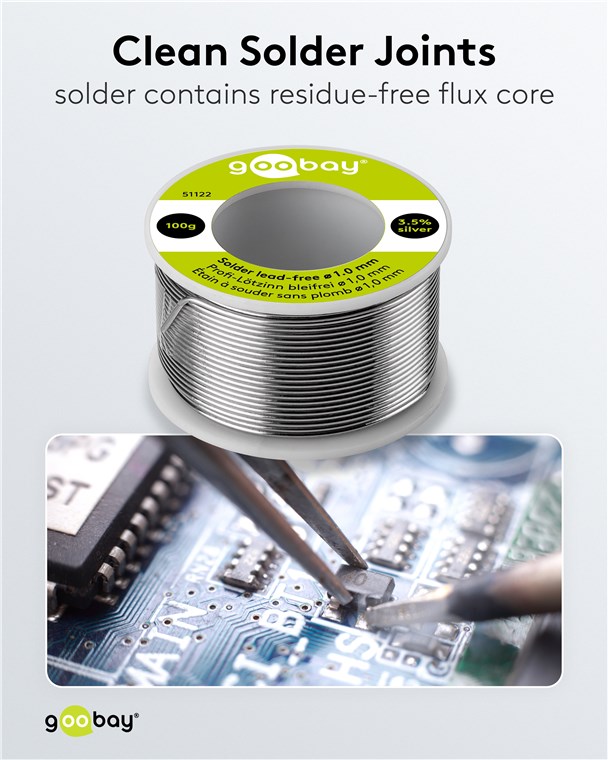 • Flux-filled solder wire with a thin diameter of 1 mm for particularly easy dispensing and soldering of delicate components