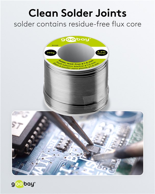 • Flux-filled solder wire with a thin diameter of 1 mm for particularly easy dispensing and soldering of delicate components