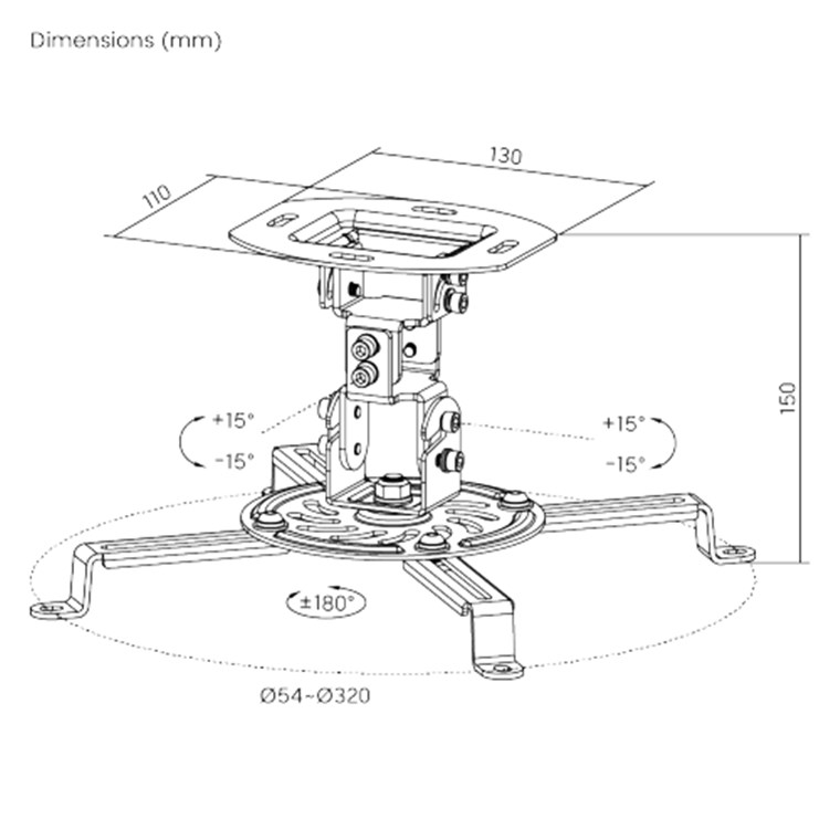 - The ceiling bracket can be tilted up to 15° and rotated by 360°