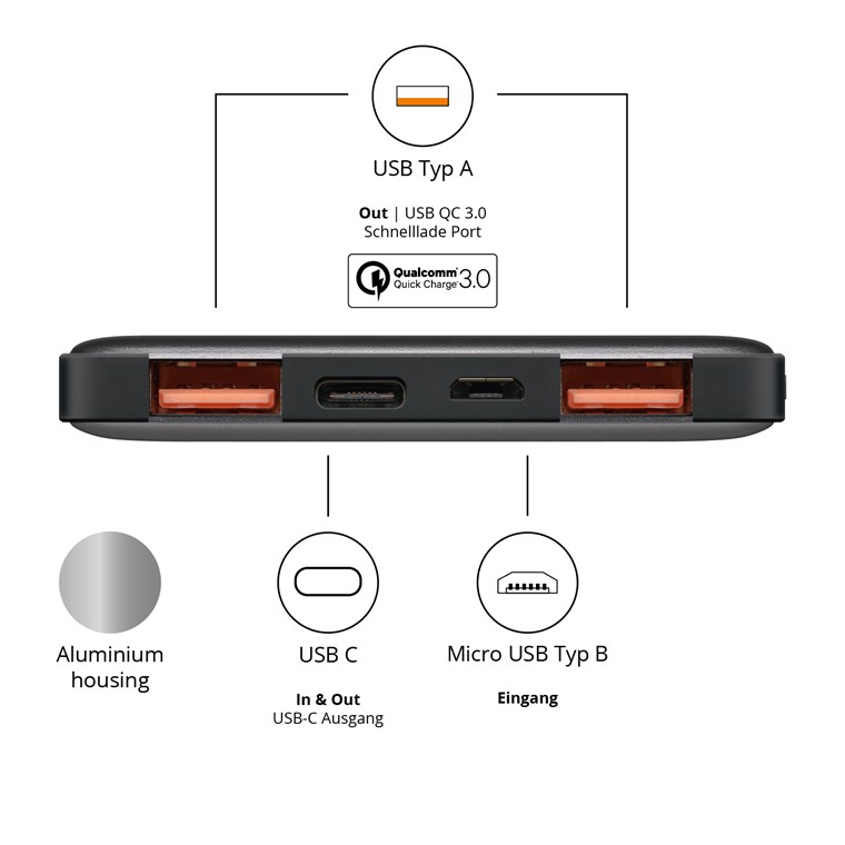 superfast charging technology with Quick Charge QC3.0 and USB-C™