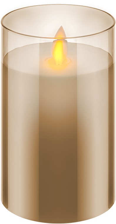 - Stylish pillar candles in three different sizes for warm candlelight with a naturally flickering flame in a golden glass – completely electric and completely safe
