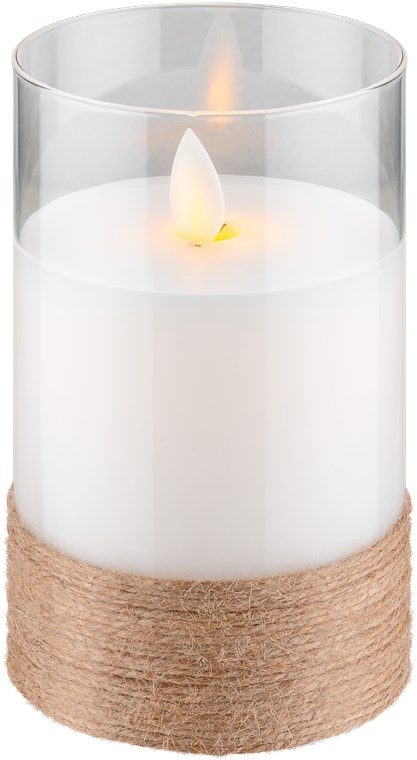 Set of 3 LED Real Wax Candles in Glass, White, Wrapped with Hemp